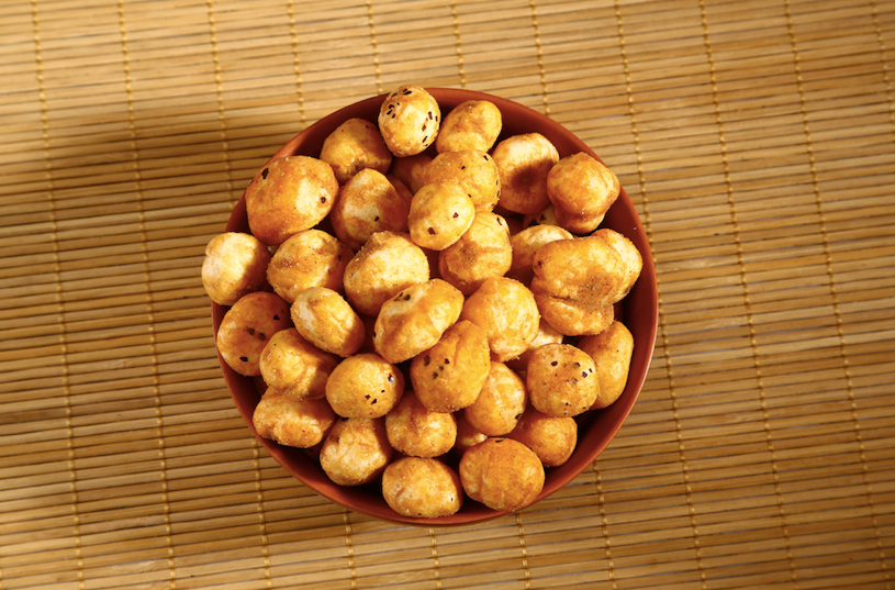 Makhana (Popped Lotus Seeds), Olive Oil, Red Chilli Powder, Iodized salt, rock Salt, Black Salt, Dry Mango, Cumin, Black Pepper, Pomegranate Seeds, Yellow Chili, Dry Ginger, Citric Acid, Clove, Carom Seeds, Asafoetida, Caraway